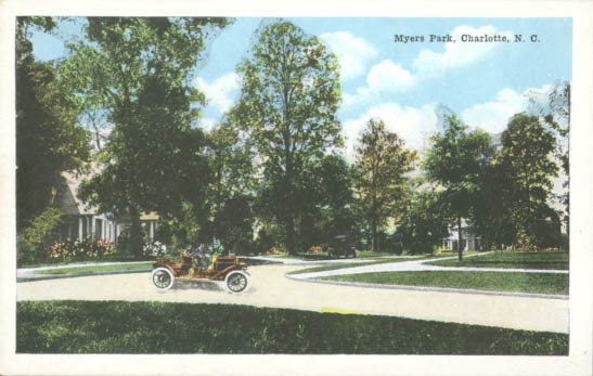 Couple driving through Myers Park. Physical Description: 3x5 Publisher: S H Kress