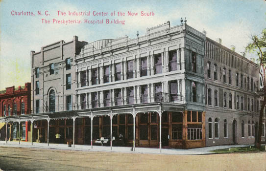Presbyterian Hospital was originally located at 311 West Trade Street. Physical Description: 3x5 Publisher: Stone and Barringer Publishers