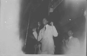 William Billy Clarence Eckstine (1914 – 1993) was a popular American singer of ballads and a bandleader during the Swing Era. He is seen here performing at the Armory Auditorium in Charlotte duirng the early 1940s. Eckstine was inducted into the Grammy Hall of Fame in 1999. Physical Description: Publisher: Unknown